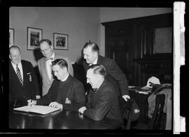 The Berliner Journal began in December 29, 1859 by Frederick Rittinger and John Motz, and was located on Queen Street south, Kitchener. Motz remained editor until his death in 1899, at which time his son William acquired his father's interest. When Rittinger died in 1915 his share was acquired by William D. Euler. The weekly Journal ended on May 10, 1924. The Record’s first staff photographer was Harry Huehnergard, who worked for the paper for 49 years before retiring in 1986 as Manager of the Photographic Department.