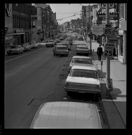 Images of King Street west, Kitchener. Pennsylvania Kitchen restaurant; Dunnette Jewellers; Waterloo Trust and Savings; Walker's Capitol theatre storefronts visible.