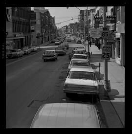 Images of King Street west, Kitchener. Pennsylvania Kitchen restaurant; Dunnette Jewellers; Waterloo Trust and Savings; Walker's Capitol theatre storefronts visible.