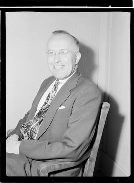 Photo caption from published version of missing photo [see 51-2495_002 for closest version]: "WELLINGTON TAX FILES - First income tax files from new areas which will become part of the Kitchener tax district Jan. 1 arrived yesterday. Shown examining Wellington County files brought from Hamilton office are R.H. Fickes (left), Kitchener district director, Miss M.G. Brown (centre), supervisor of tax roll, and W.H. Hughes, administrative officer."
