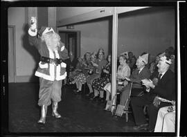 Photographs of people dancing, entertainers, and a visit from Santa Claus taken during a Christmas event at the House of Refuge.
