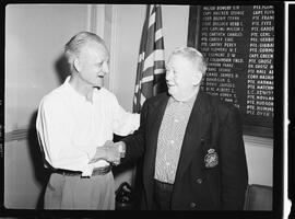Photo caption from published version of 54-6642_001: "BUDDIES MEET - John Hasler (left) and James Carse, both of Kitchener, met again last night for the first time in 36 years. They saw each other in England in 1918 when they were in the Canadian army."