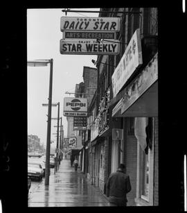 View of King Street south of Erb Street. Business signage includes Hub Cigar and Billiards, Mozart Cafe, Graham’s Grill.