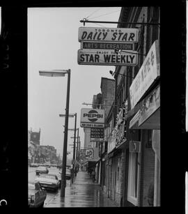 View of King Street south of Erb Street. Business signage includes Hub Cigar and Billiards, Mozart Cafe, Graham’s Grill.